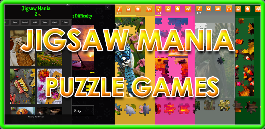 The images used for puzzles are downloaded from free loyalty sites and the icons included in the game area made by photoshop. The music and sound effects are downloaded from free license websites too.